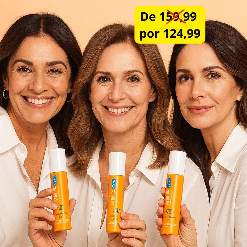 Conhecida por sua ação iluminadora, a Vitamina C estimula a produção de colágeno, clareia manchas, melhora a firmeza e deixa a pele com aspecto mais uniforme e radiante. Ela é essencial para reverter os sinais do envelhecimento precoce e proteger a pele contra agressões externas.