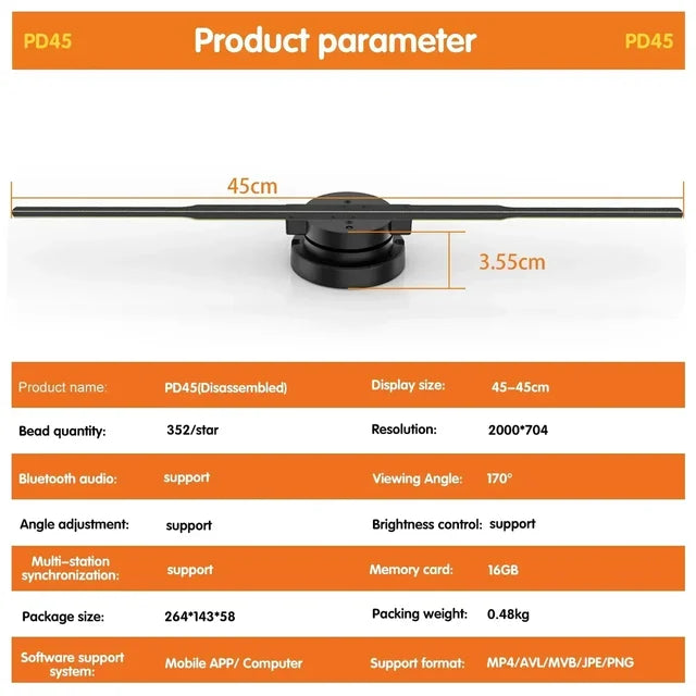 Projetor de holograma de ventoinha 42-100CM 3D tela Wifi sinal led de logotipo publicitário candeeiro holográfico projetores tridimensionais
