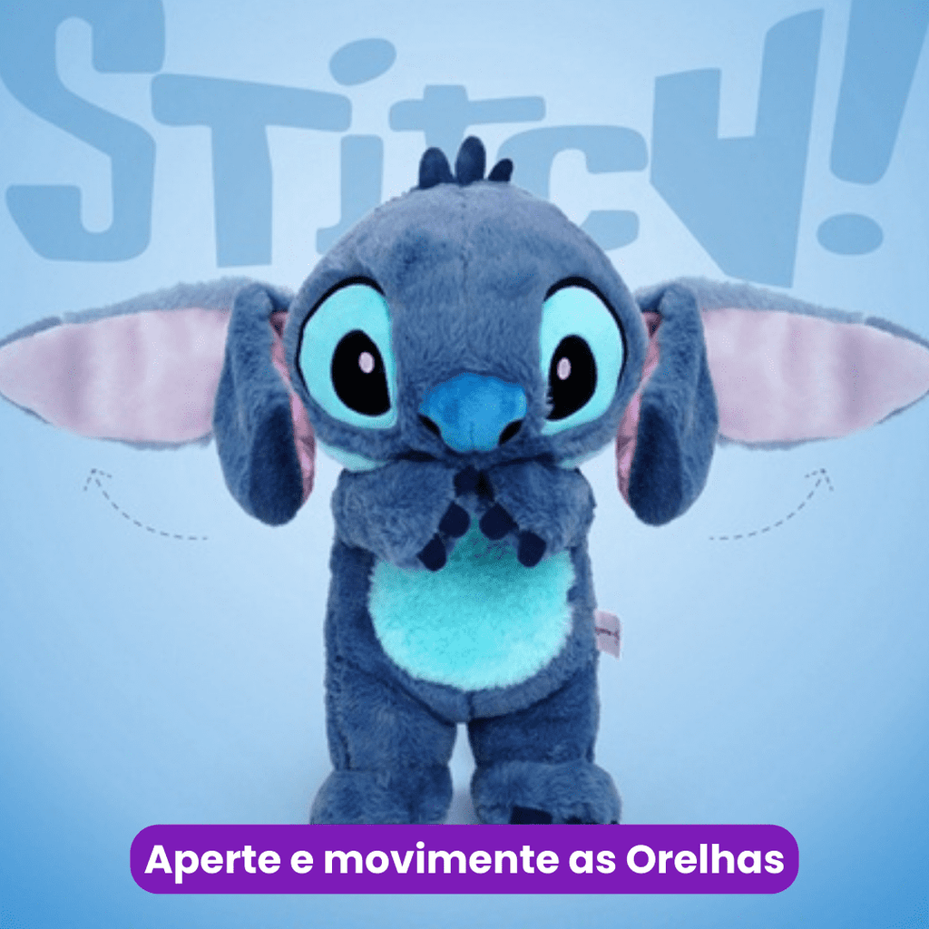 Orelhas Móveis: As orelhas do Stitch se movem, trazendo ainda mais vida e personalidade ao seu novo amigo de pelúcia.